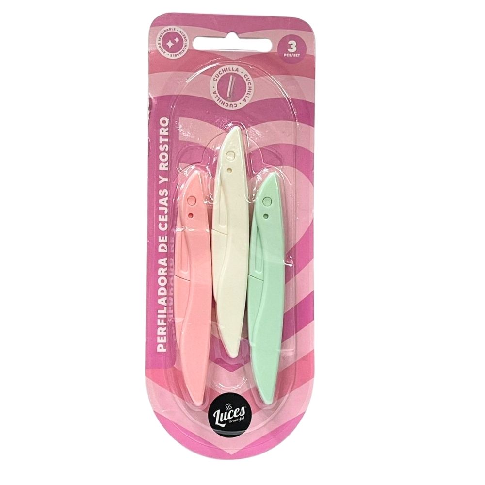 La perfiladora de cejas y rostro es la herramienta ideal para lograr una depilación precisa, rápida y sin dolor. Este set incluye 3 perfiladores en tonos suaves y femeninos, perfectos para el cuidado diario del rostro desde la comodidad de tu hogar.