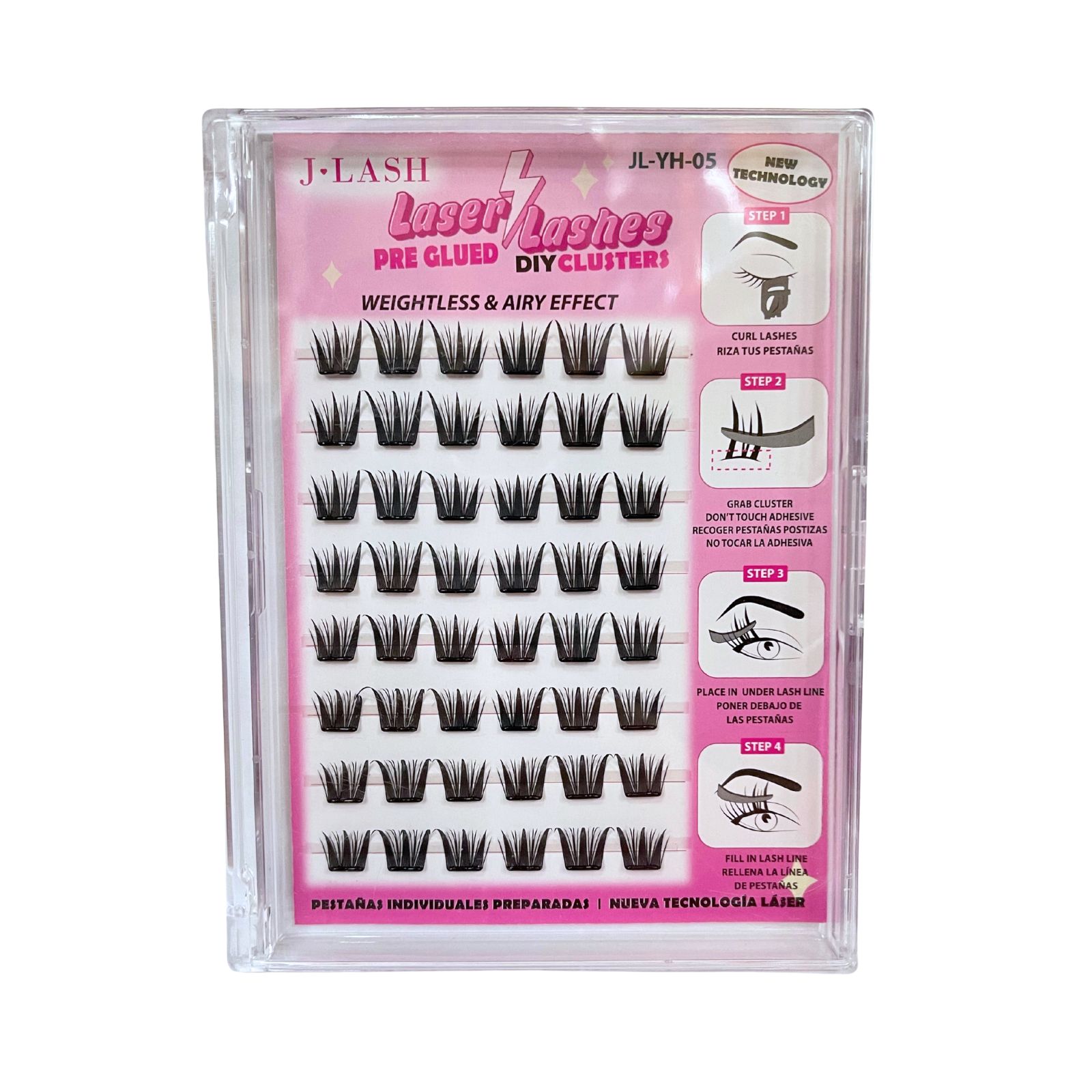 Las pestañas son más fáciles de aplicar que nunca. Nuestros racimos de Manga Lash ya tienen pegamento. Aplica estos racimos debajo de las pestañas naturales.